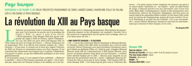 « »Faire perdurer le club historique de Cote Basque XIII